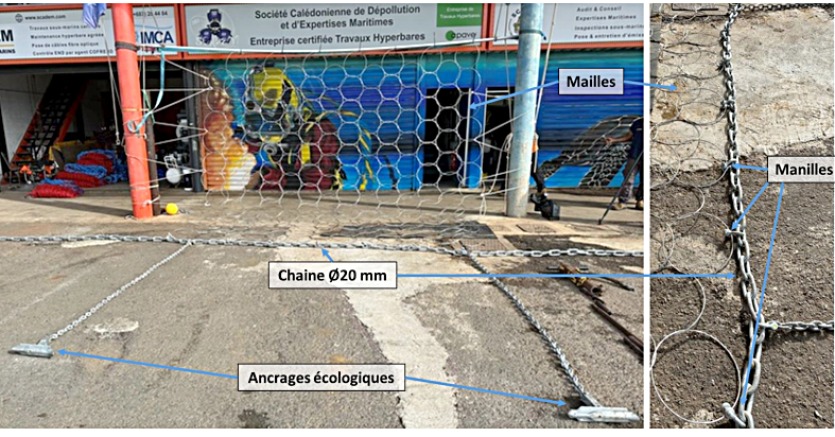 La barrière, dont l’assemblage a été attribué à la société locale Scadem, sera composée de panneaux d’anneaux en acier inoxydable de 35 cm de diamètre. Ces mailles rigides sont réputées pour ne pas piéger les animaux marins. Autrement dit, la barrière permettra le passage des poissons tout en excluant les espèces de grande taille. La mégafaune, constituée de dugongs, de dauphins, de tortues, de raies, de grosses carangues et surtout de requins ne devrait donc plus pouvoir pénétrer dans la zone de baignade.