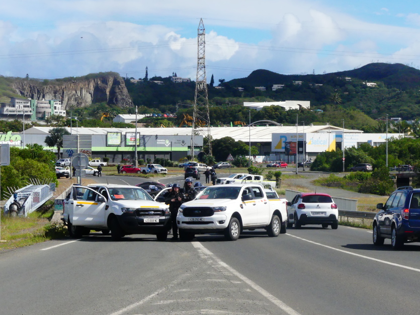 Sécurisation et intervention des forces de l’ordre à l’entrée de Ducos. Photo Anthony TejeroLe retour des forces de l’ordre dans la zone "depuis 48 heures" est également vécu comme un soulagement chez ces Calédoniens qui "donneront tout" pour préserver leur outil de travail.