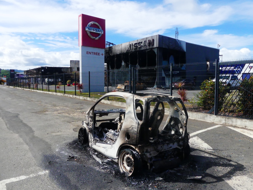 - Anthony Tejero | Crée le 27.05.2024 à 16h48 | Mis à jour le 27.05.2024 à 16h48ImprimerLes dégâts sont colossaux chez ce concessionnaire automobile de Ducos. Photo Anthony TejeroDans la zone industrielle de Ducos, salariés et chefs d’entreprise unissent leurs efforts pour surveiller et protéger, de jour comme de nuit, leurs sociétés face aux émeutiers qui ont déjà ravagé une partie du poumon économique du pays. Reportage.