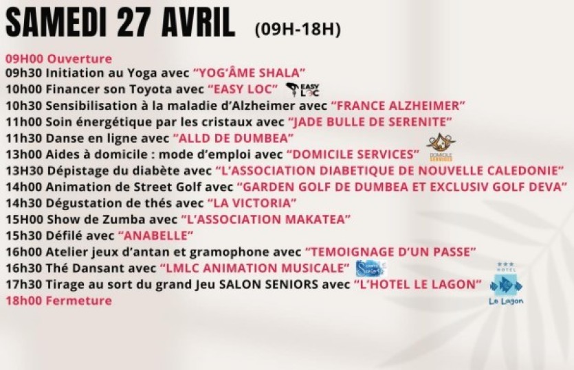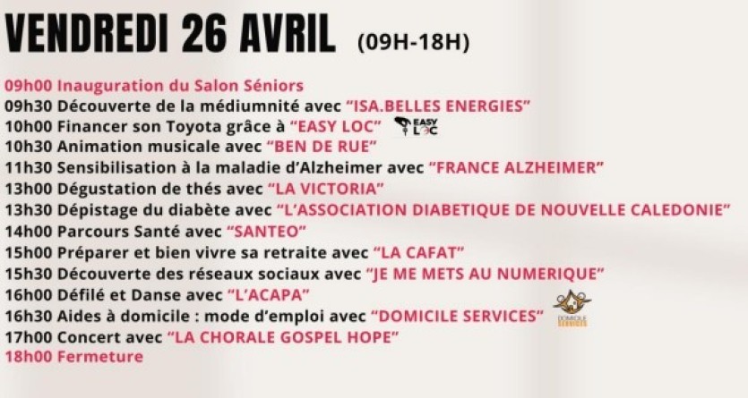 - A.T. | Crée le 25.04.2024 à 05h00 | Mis à jour le 25.04.2024 à 05h00ImprimerAprès une première édition en 2016, le Salon des seniors avait attiré près de 2 500 visiteurs lors de la deuxième édition, en mai 2023. Photo Pacific FairPour préparer sa retraite, pour trouver des idées d’activités de loisirs ou sportives ou encore pour accompagner un proche en perte d’autonomie… Les raisons ne manquent pas pour se rendre au Salon des seniors, dont la troisième édition est organisée à la Maison des artisans, ces vendredi et samedi. L’an passé, l’évènement avait attiré près de 2 500 visiteurs.