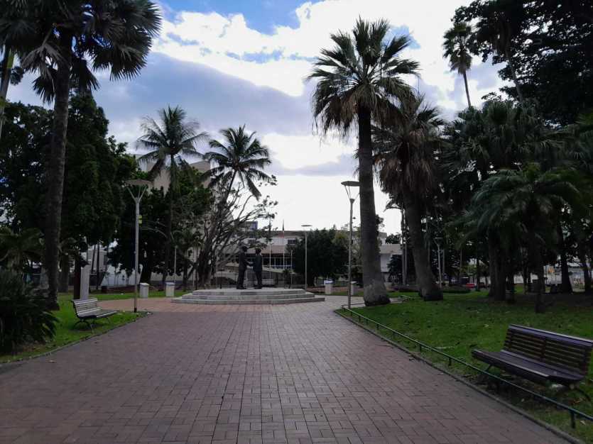 La place de la Paix était également déserte. Photo Anthony TejeroAssise devant l’entrée de son immeuble, "exceptionnellement fermée", Marthe est bloquée et attend que son compagnon vienne lui ouvrir. Cette femme de 32 ans est également partie plus tôt du bar-restaurant où elle travaille à l’Anse-Vata. "Mes chefs m’ont demandé de finir à 14 heures au lieu de 17 heures pour rentrer chez moi par mesure de sécurité car ils avaient peur que ce soit risqué dans le centre-ville. Je ne m’attendais pas à voir à ce point tout fermé, je suis très surprise. Ça me semble exagéré mais vu tous les commerces qui ont déjà été saccagés, je peux comprendre que le principe de précaution l’emporte."
