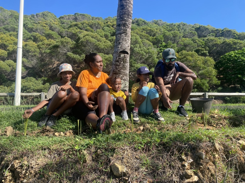 Des plants de vétiver, choisis pour leur important système racinaire, ont été plantés le long de la côte Blanche. Mais aussi des palétuviers blancs et des "pieds-de-poule". Photo Julien MazzoniSur le terrain, l’opération prend également une dimension familiale. À genoux dans la terre, Patricia guide sa petite-fille, Alix, qui a presque 3 ans. "Il faut sensibiliser les enfants dès le plus jeune âge, s’enthousiasme la grand-mère. Et en plus, ils adorent faire ça."