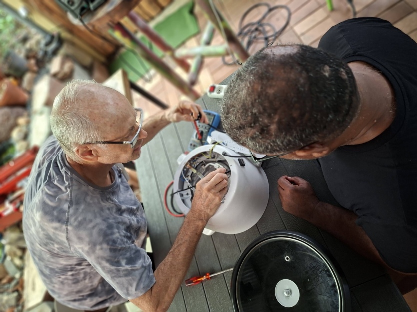 Les marmites à riz sont particulièrement simples à réparer, alors au lieu de la jeter et d'en racheter une nouvelle, les bénévoles de Repair Café peuvent les réparer, comme Didier, à gauche. Photo Repair CaféEn 2025, sur 101 objets pris en charge :