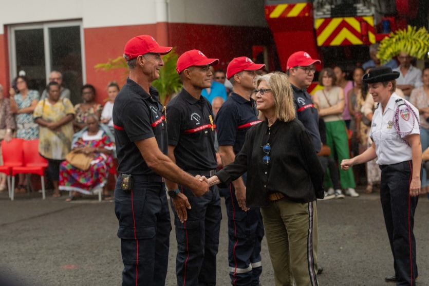 La maire a tenu à remercier ses équipes de pompiers municipaux. Photo : Ville de Nouméa / NikO VinCentDans ce contexte, la mairie de Nouméa a tenu à organiser une cérémonie, jeudi soir, à la caserne Lucient-Parent, au centre-ville, pour saluer le dévouement et "la détermination sans faille" de ces femmes et ces hommes, en particulier durant la crise. Au total, 39 pompiers ont été décorés et promus par la première magistrate Sonia Lagarde ainsi que le haut-commissaire Louis Le Franc et le président du gouvernement Alcide Ponga.