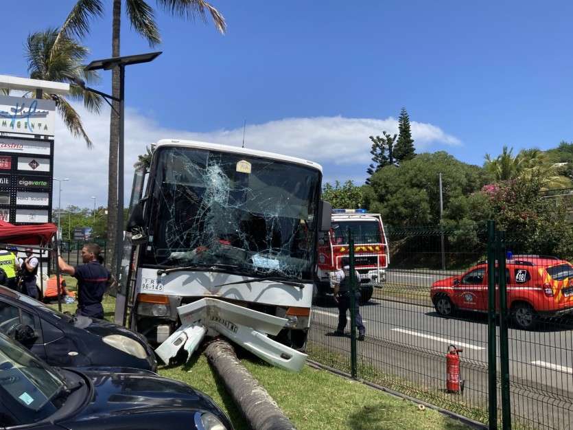 Le chauffeur a fait un malaise cardiaque et a perdu le contrôle de son véhicule qui est venu s’encastrer contre un cocotier, sur le parking du centre commercial, après avoir traversé la clôture. Il transportait 18 élèves du lycée Petro-Atiti, de Rivière-Salée.