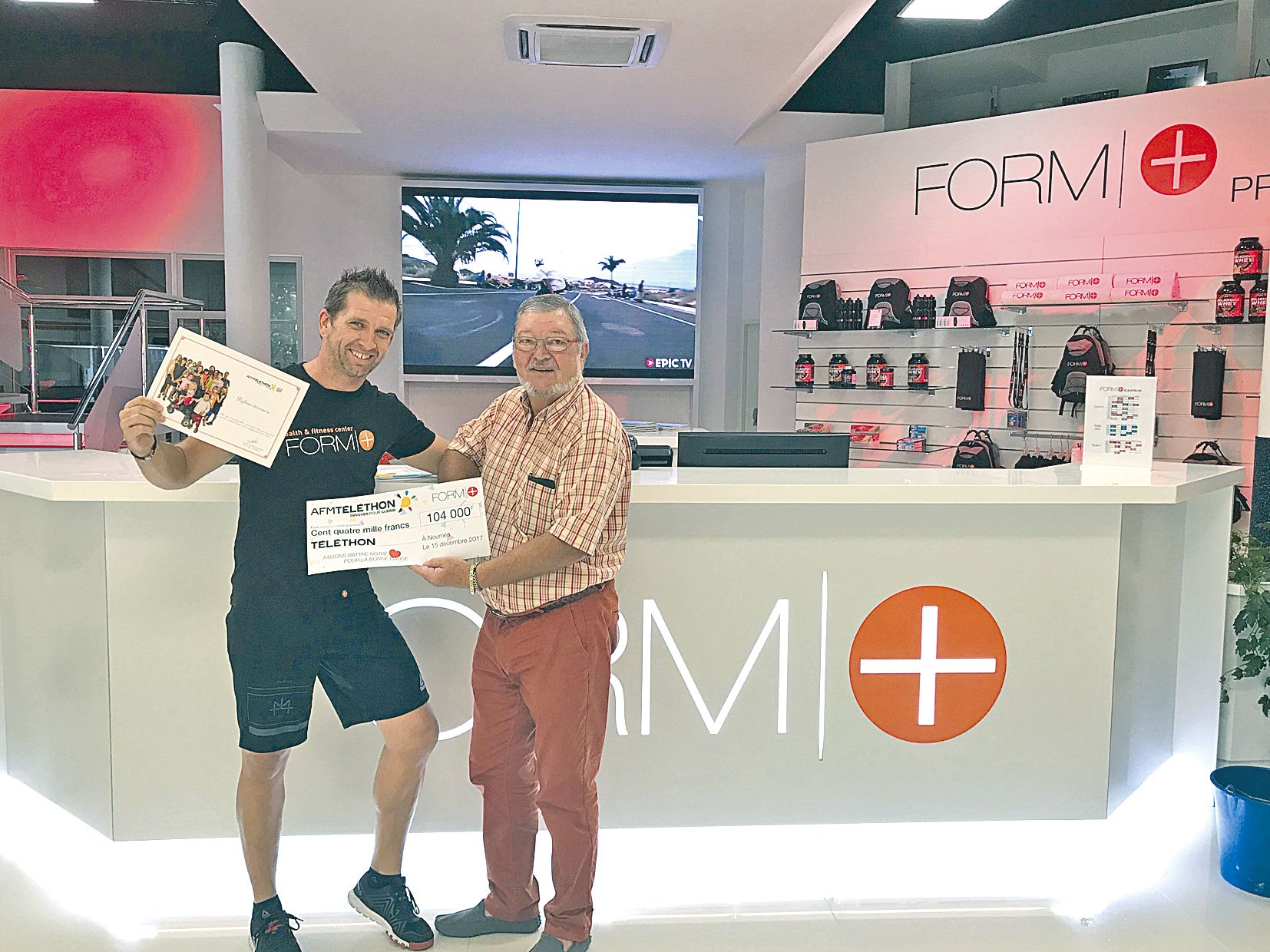 - Centre-ville.Form +, qui compte trois salles sur Nouméa, dans le centre-ville, à l’Anse-Vata et à Normandie, a remis un chèque de 104 000 francs à Robert Racapé (à droite), responsable de l’AFM-Téléthon en Nouvelle-Calédonie. Une somme récoltée le samedi 9 décembre, à la suite deIl vous reste 28% de l'article à découvrir.Cet article est réservé aux abonnés.
