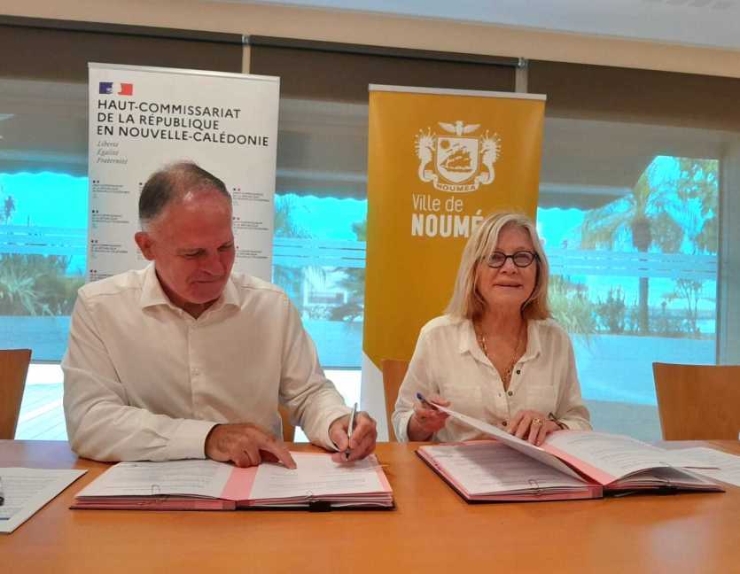 - Anthony Tejero | Crée le 18.12.2023 à 18h04 | Mis à jour le 19.12.2023 à 08h08ImprimerLe haut-commissaire Louis Le Franc a salué les "décisions courageuses" prises ces derniers mois par la maire Sonia Lagarde, qui a quant à elle, eu une pensée pour les nombreuses victimes d’attaques de requins en quelques années dans sa commune. Photo Anthony TejeroLa mairie de Nouméa a signé, ce lundi, une nouvelle convention de financement avec l’État qui prend en charge plus de la moitié du coût de l’installation des trois barrières anti-requins à la baie des Citrons, au Château royal et à l’anse Vata. L’occasion pour la maire de dévoiler les contours des deux futures installations et d’expliquer le fonctionnement de la structure de la BD, "plus grande zone de baignade protégée au monde".