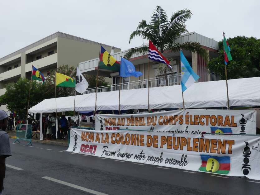 Au pied du tribunal de Nouméa, ils étaient une quarantaine, ce mardi 27 février, mobilisés à l’appel de la Cellule de coordination des actions de terrain (CCAT) pour "soutenir les familles des jeunes interpellés" et dénoncer une réponse "disproportionnée" de la justice. C’était aussi l’occasion de rappeler leur "opposition au projet de dégel du corps électoral", expose Christian Tein, à la tête de la CCAT.