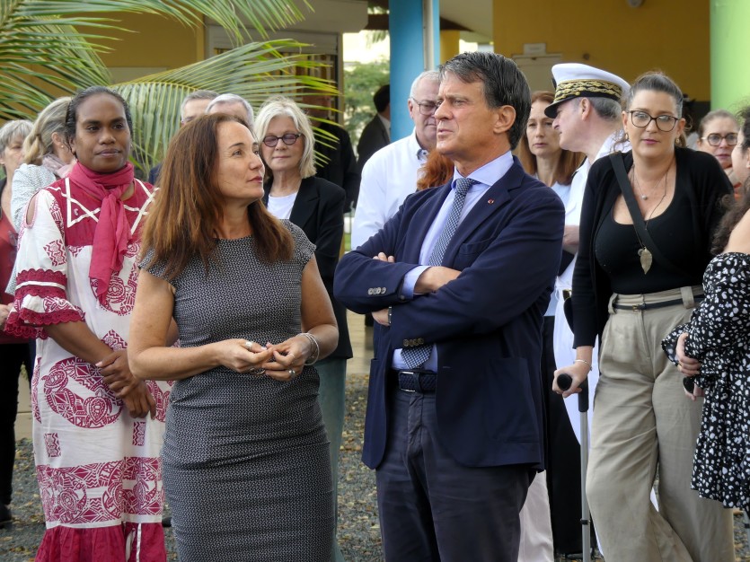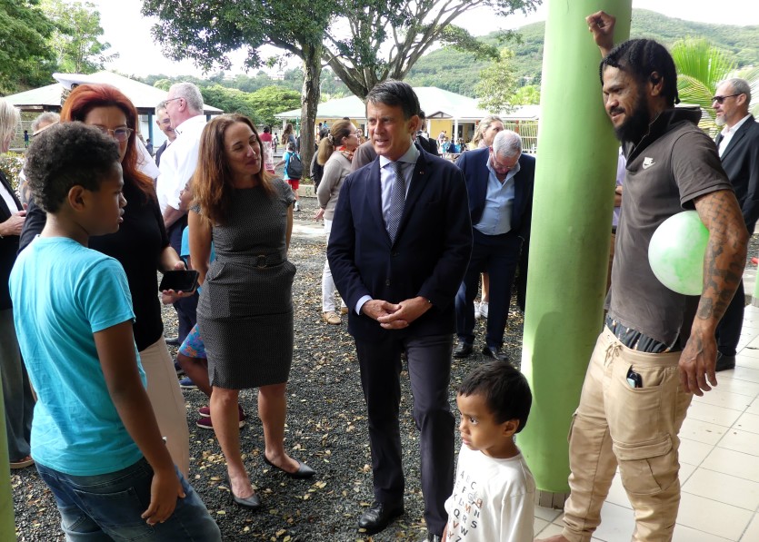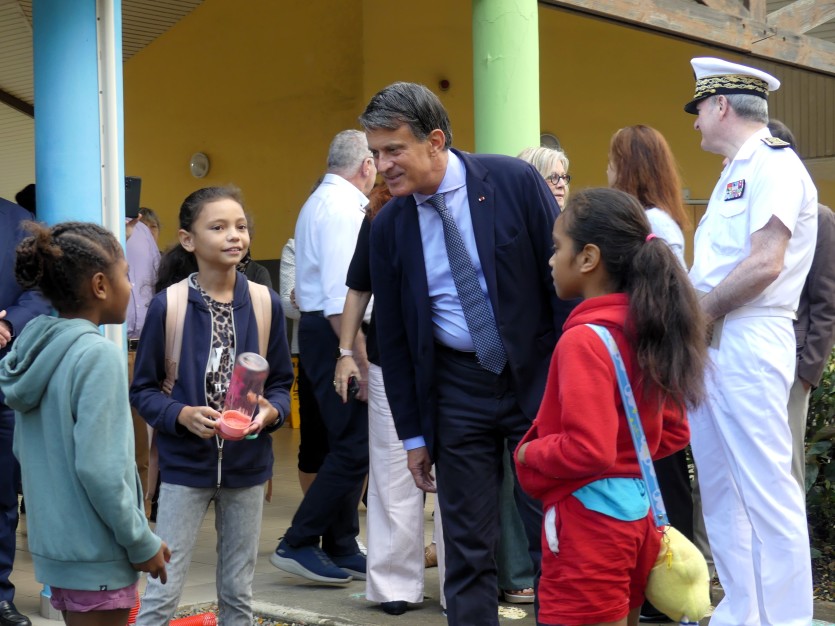 "Je n’allais pas rater la rentrée scolaire." Alors qu’il a décidé de prolonger son séjour jusqu’à mardi 26 août en Nouvelle-Calédonie, le ministre des Outre-mer a profité de l’occasion pour visiter l’école Edmond-Desbrosse de Kaméré, ce lundi 25 août, pour le retour en classe des élèves. Aux côtés de la maire de Nouméa, Sonia Lagarde, et de la présidente de la province Sud, Sonia Backès, Manuel Valls a pu "saluer les équipes enseignantes et les parents présents" et rappeler que "ce que nous faisons, c’est pour cette jeunesse".