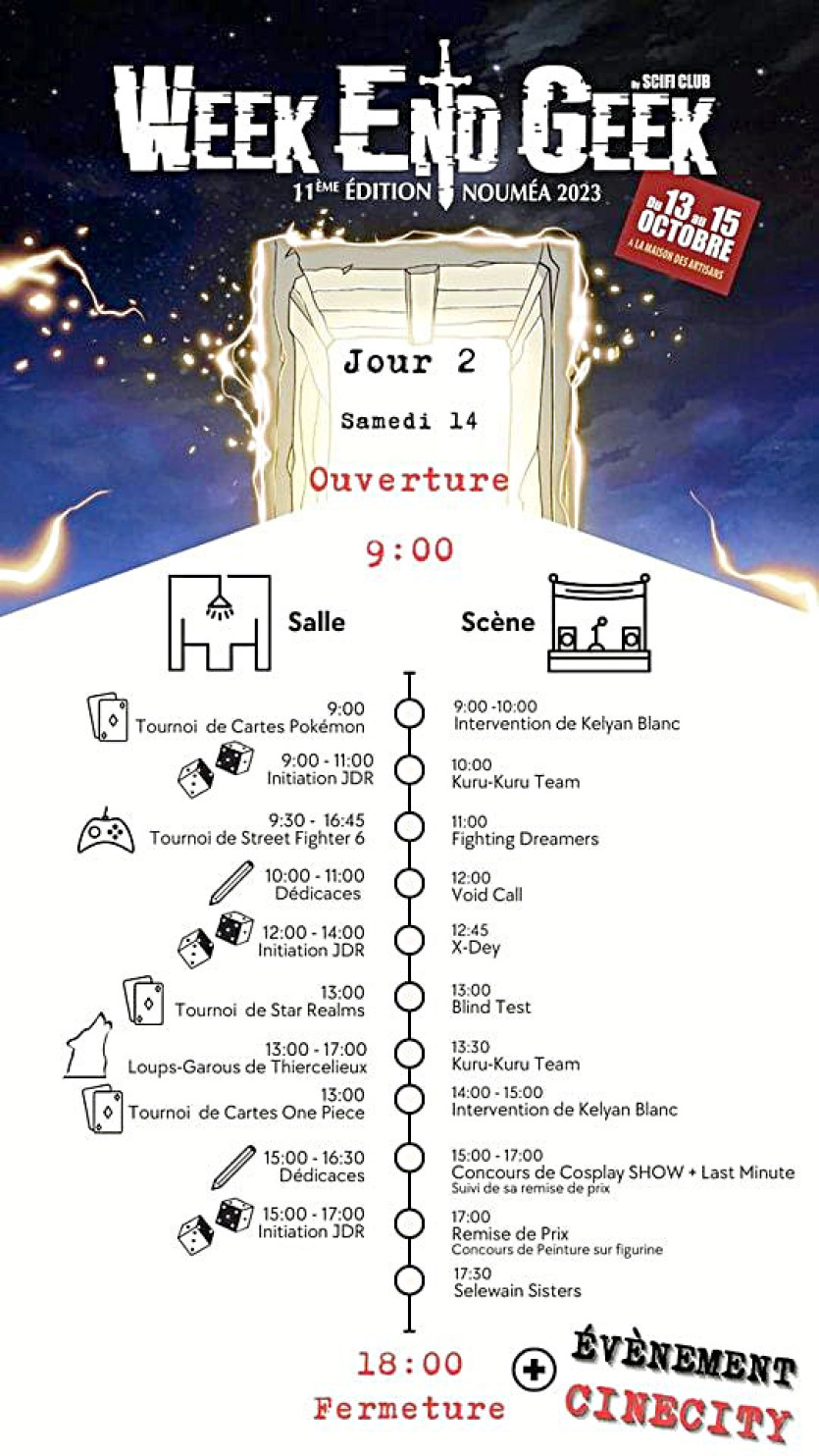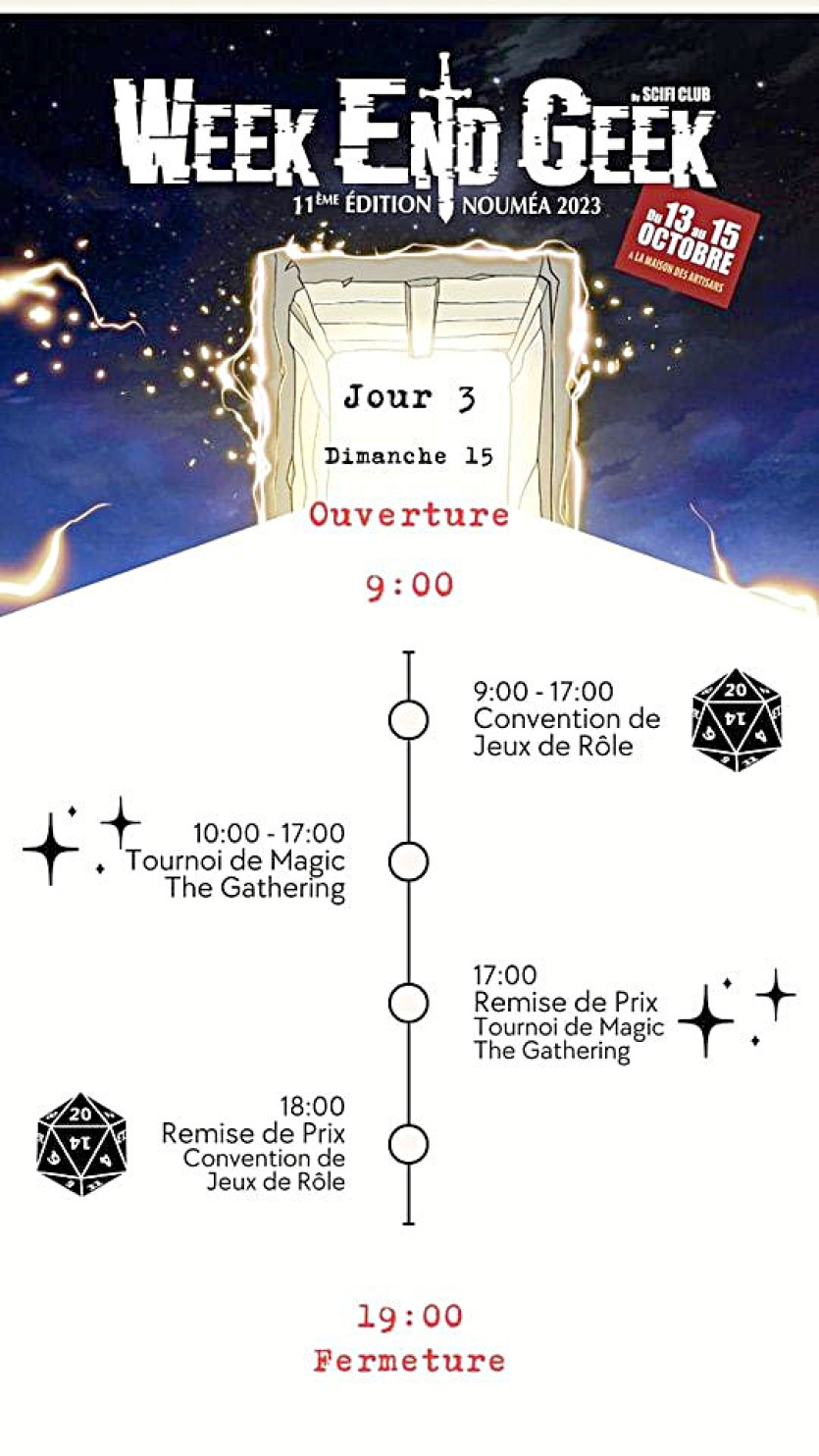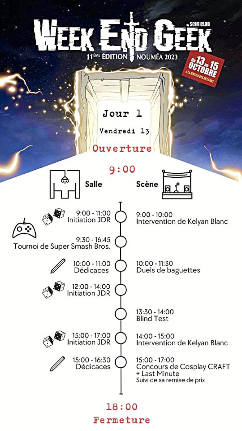 "Mais attention, le Week-end geek risque de vous surprendre grâce à ses nouvelles activités, promet le Scifi Club, l'association en charge de l'évènement. Une immense place est désormais réservée pour découvrir notre magnifique univers geek. Vous pourriez participer à des initiations de jeux de société, de plateaux, de figurines, de cartes ainsi que d'autres nouveautés qui vont vous ravir. "