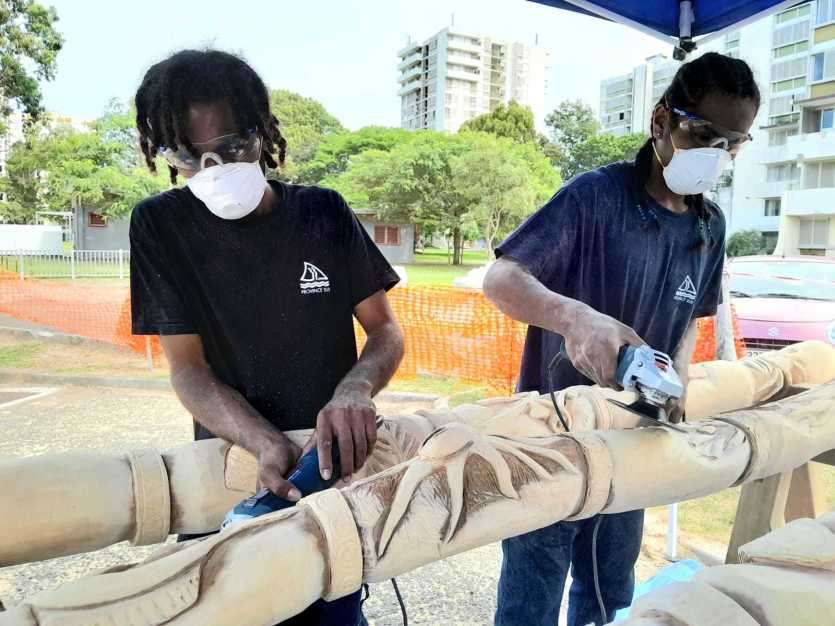 - Anthony Tejero | Crée le 10.04.2024 à 05h00 | Mis à jour le 12.04.2024 à 16h00ImprimerCes jeunes, qui habitent tous dans les tours, sont engagés pour une période de 26 semaines, avec une rémunération de 50 % du SMG (Salaire minimum garanti). Photo Anthony TejeroDepuis un mois, six habitants des tours de Magenta participent à un chantier d’insertion où ils font appel à leur créativité. Objectif : réaliser 68 poteaux en bois sculptés ainsi que des fresques au pied des immeubles pour redorer le blason de leur cité "délaissée". L’occasion également de retrouver le chemin vers l’emploi.