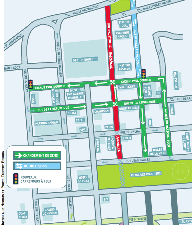 - Centre-ville. Changement de sens, voie double ou interdite. A partir du 28 juillet, les travaux du Néobus vont modifier durablement le plan de circulation actuel. Quatre phases sont prévues jusqu’à début 2019 au moins.Austerlitz devient la voie du Néobus La ligne 1 du Néobus continue de tracer son chemin. Après les travaux de nuit en cours du côté de Patch, tous les chantiers se concentreront rue d’Austerlitz à partir du 28 juillet. Fermé à la circulation à différents endroits, l’axe va êIl vous reste 93% de l'article à découvrir.Cet article est réservé aux abonnés.