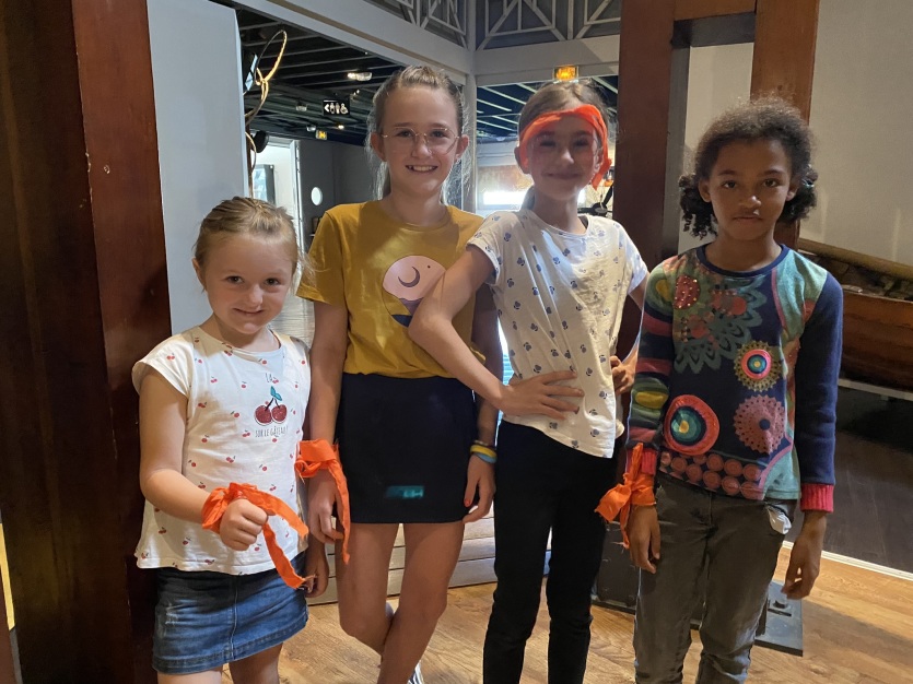 Lou, Lila, Lisa et Yali participent à l’Escape game spécial enfant organisé au Musée maritime lors des vacances scolaires d’août 2024. L’équipe orange ne compte passer la nuit au musée ! Photo Aurélia DumtéRetour des familles