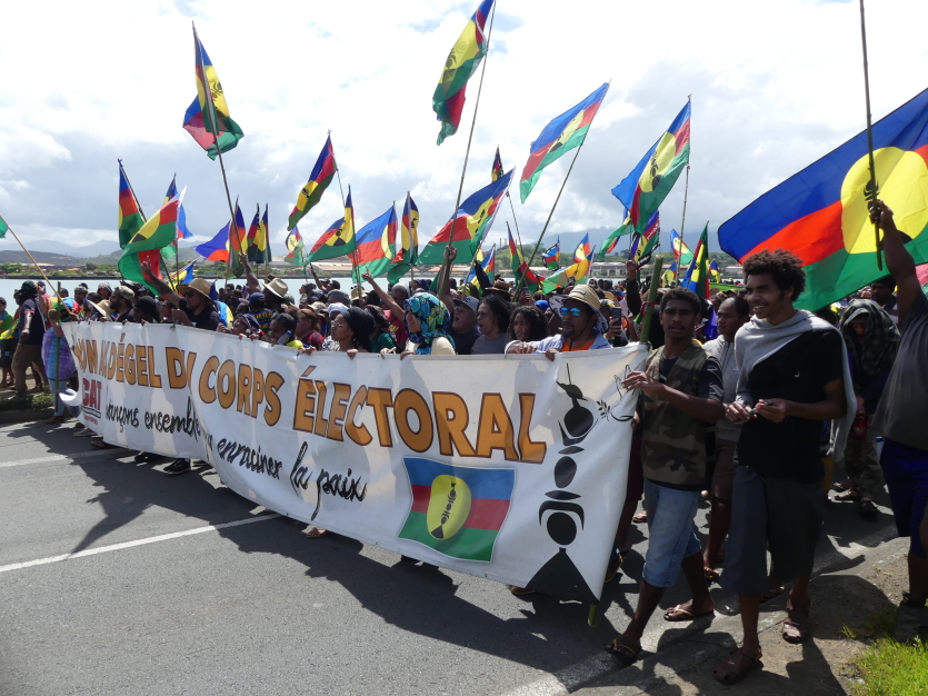 Cinq jours après la dernière mobilisation, la CCAT est parvenue à mobiliser encore davantage de monde, ce mardi matin. Photo Baptiste GouretCette manifestation intervient cinq jours après une marche qui avait déjà réuni des milliers de personnes à Nouméa et alors que la réforme constitutionnelle doit faire l’objet d’un vote solennel, dans la nuit de mardi à mercredi au Sénat. Comme depuis plusieurs semaines, le mouvement répète son opposition à ce texte porté par le gouvernement national, censé ouvrir le corps électoral à plus de 25 000 personnes supplémentaires pour les prochaines élections provinciales, qui se tiendront d’ici le 15 décembre. Un projet de loi qui mettrait "en péril les équilibres" de l’Accord de Nouméa, selon les organisateurs de la marche et le FLNKS.