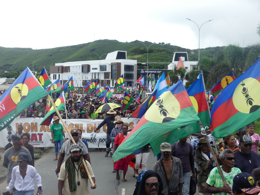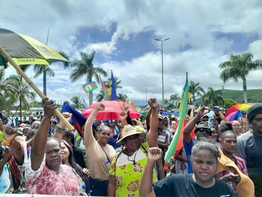 Par centaines, les drapeaux Kanaky envahissent le centre-ville, ce jeudi. Ils sont plusieurs milliers (près de 2500 selon les services de renseignement et plus de 6000 selon les organisateurs) à avoir répondu à l’appel de la CCAT (Cellule de coordination des actions de terrain) à l'origine d'une marche de Montravel jusqu’au haussariat, en passant par le gouvernement, pour exprimer leur opposition au dégel du corps électoral. Une manifestation qui se déroule, en cette fin de matinée, dans la bonne humeur et le calme, sonos et micros mis à part.
