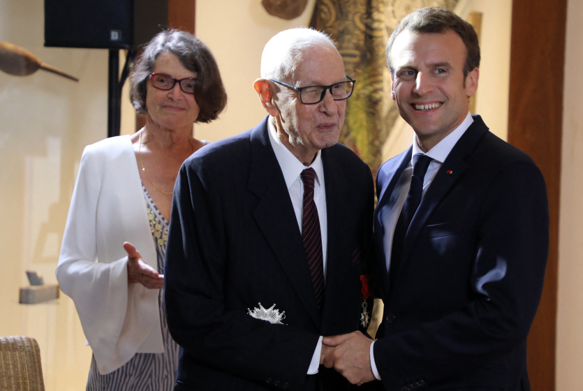 En mai 2018, lors de son déplacement en Nouvelle-Calédonie, le président de la République Emmanuel Macron avait remis la Grand-Croix de la Légion d’honneur à Jean Lèques. Photo AFP / Ludovic Marin"Apporter une véritable identité"