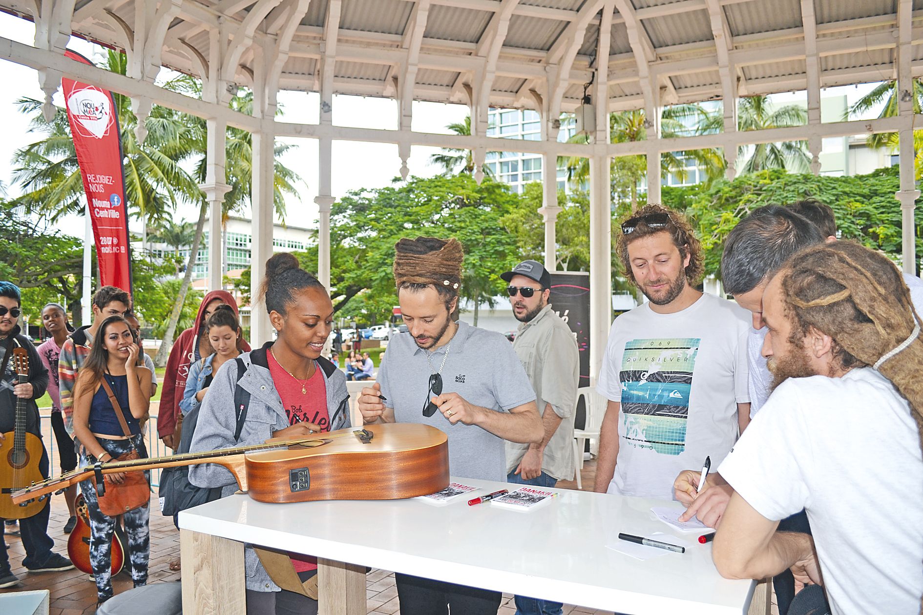 - Centre-ville. Avant leur passage à l’aquarium (voir ci-dessus), le groupe Danakil était hier midi place des Cocotiers. Ils sont plusieurs dizaines à avoir répondu à l’appel du groupe de reggae. Jeunes et moins jeunes n’ont pas hésité à faire la queue au kiosque à musique, pour pouvoirIl vous reste 51% de l'article à découvrir.Cet article est réservé aux abonnés.