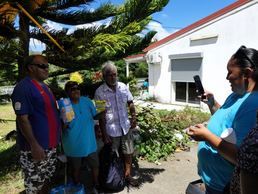 Rue du commandant Charcot, à Rivière-Salée. Il est 9h30. Dans le jardin de la maison de Francis Maluia, président du collectif Solidarité RS, une dizaine de bénévoles s’affairent, comme chaque semaine, à la préparation des paniers alimentaires : une brique de jus de fruit, un paquet de pâtes et de riz, parfois une boîte de sardine et du thon surgelé. Les "packs" sont alignés sur des tables pliantes, dans l’attente d’être récupérés par les familles.