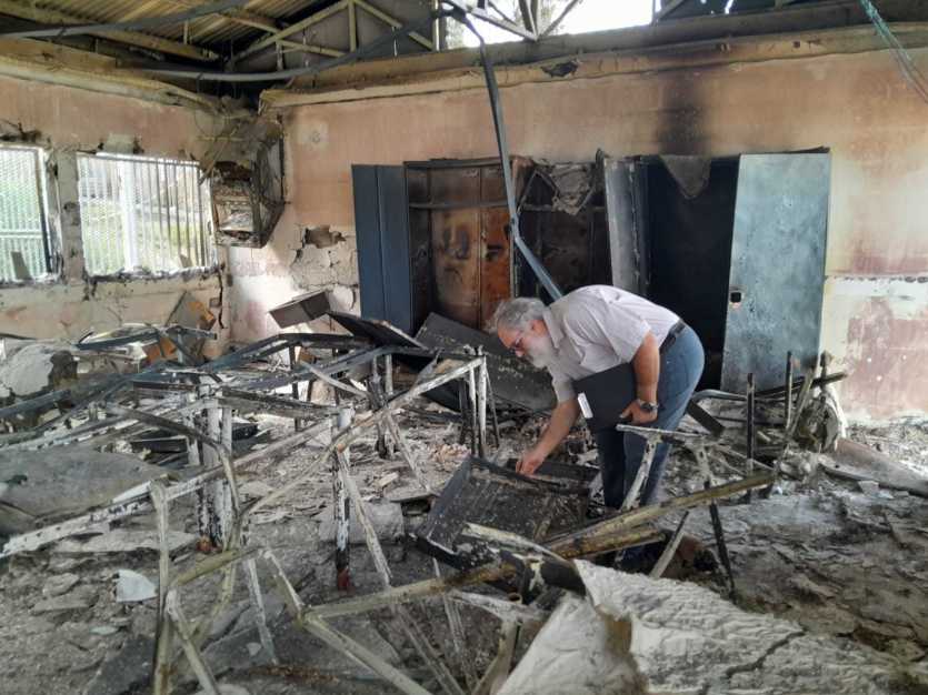 Les traces des incendies sont nombreuses dans l’établissement. Photo Anthony TejeroCe lundi matin, la vice-présidente du gouvernement en charge de l’enseignement a tenu à se rendre en personne sur place pour mieux prendre la mesure des destructions, quelques heures après que le lycée Jean-23, de Païta, a été la cible d’un incendie.