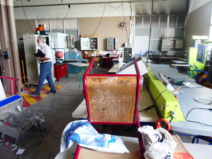 "L’intégralité de l’outillage a été volé. Je n’ai pas retrouvé la moindre mèche de perceuse." Déambulant dans un dédale de décombres qui servait autrefois d’atelier aux jeunes de la filière électricité, cet expert en charge d’évaluer l’ampleur des dégâts a du pain sur la planche. Plateaux techniques, salles de classe, bureaux, réfectoire, internat… Les moindres recoins du lycée professionnel Pétro-Attiti, à Rivière-Salée, ont été "méthodiquement" pillés, saccagés, détruits et même incendiés.