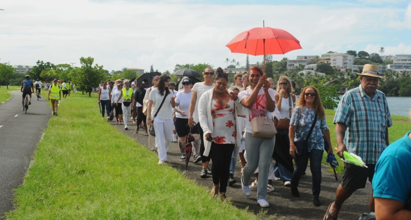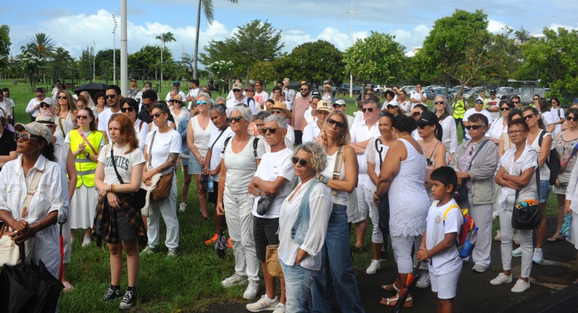 "Il faut que les jeunes aient des repères. Et ce repère, c'est la notion d'humanité, on est tous frères en humanité", estime Florence, qui participe à la marche blanche organisée en mémoire de Joëlla. Photo A.-C.P."Je suis là par solidarité, par humanité. Ce qui s'est passé est d'une sauvagerie qui n'a plus visage humain, c'est la non-acceptation de la moindre différence. Ça affecte toute la société, et je pense que tout le monde devrait se sentir concerné. Ce n'est pas une question ni de choix politique, ni d'ethnie, ni de religion, ni de quoi que ce soit d'autre. Il ne faut pas manquer le coche de faire entendre la colère légitime des gens qui ont une conscience. Il faudrait qu'au sein des familles, des associations sportives, des écoles, de tout ce qui peut faire ciment, cela soit évoqué comme une date très sombre pour la Nouvelle-Calédonie. On est dans un temps troublé, et il faut que les jeunes aient des repères. Et ce repère, c'est la notion d'humanité et de fraternité, on est tous frères en humanité, et il faut que ça soit mis vraiment en avant."