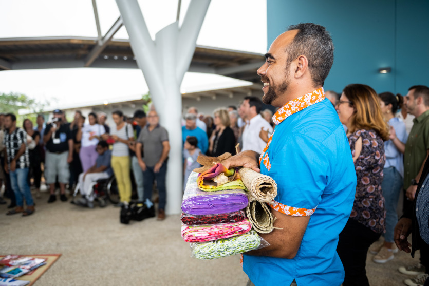 L’inauguration de la FOL s’est ouverte par une coutume. Photo Anthony TejeroSi Valentine Eurisouké ne s’est pas risquée à se dévoiler de la sorte, la représentante de la province Nord a également plaidé en faveur d’un lieu du "vivre ensemble" qui doit "permettre l’épanouissement de tous les citoyens" : "Nous sommes tous venus ici de nos provinces avec nos visions, nos diversités, mais aussi nos divergences. Et à ce tournant de notre histoire, il nous faut un fil conducteur qu’incarne ce genre d’outils ouvert à tous."