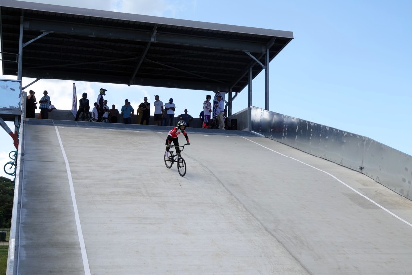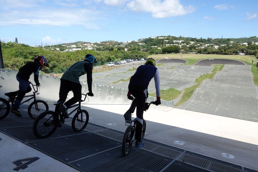 Plusieurs pratiquants de BMX se sont essayés à la descente de la rampe de cinq mètres, point de départ d’un long parcours bosselé. Photo Baptiste GouretLe comité régional de cyclisme envisage également, à terme, la création d’un pôle espoirs. Selon les estimations de la province Sud, la piste de Tina pourrait permettre "une augmentation des licenciés de plus de 20 %". Sept ans avant les Jeux Olympiques de Brisbane, en Australie, elle représente aussi l’occasion pour la Nouvelle-Calédonie de devenir un camp de base pour les sélections internationales.