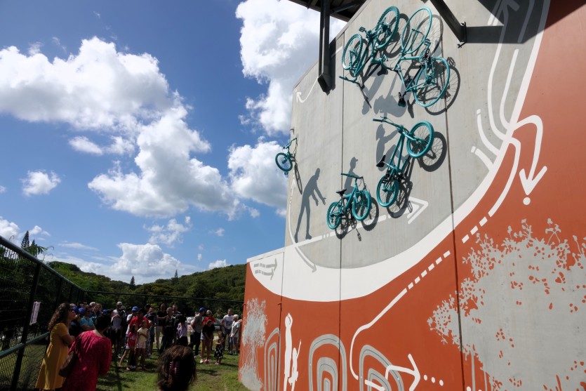 Situé à côté du skatepark et à quelques dizaines de mètre des boucles de Tina, ce nouvel équipement sportif ne se limite pas à sa rampe. Passé la descente, un parcours de bosses étalé sur 18 000 m2 s’offre aux adeptes de ce sport de plus en plus populaire dans l’Hexagone comme en Nouvelle-Calédonie.