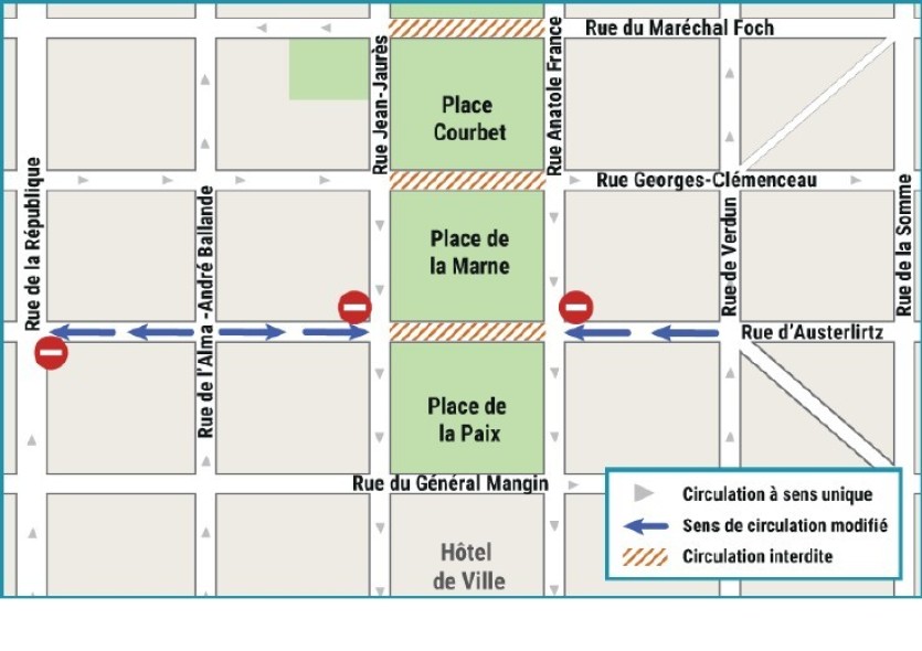 Seules certaines portions sont toutefois ouvertes, en sens unique : entre la rue d’Alma et la rue Jean-Jaurès d’un côté, et entre la rue de l’Alma et la rue de la République de l’autre. Une troisième voie ouvrira dès l’installation de la signalisation, entre la rue de Verdun et la rue Anatole-France, en sens unique également.