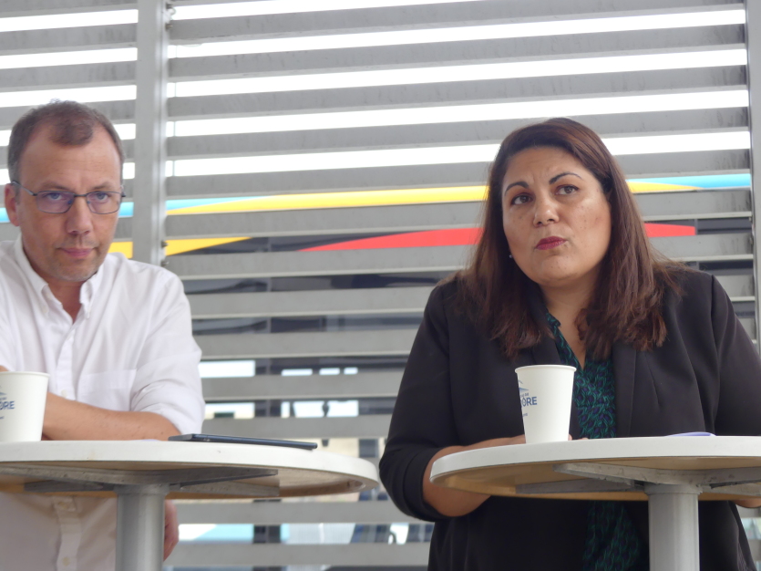 Naïa Wateou, présidente du SMTU, et Hugues Georgelin, directeur, ont tenu une conférence de presse pour demander à Karuïa de "revenir à la table des discussions". Photo Baptiste GouretUn exercice rendu encore plus difficile par l’incertitude de la fréquentation future du réseau. Samedi, 1 000 validations de tickets ont été enregistrées, contre 6 000 à 7 000 pour un samedi d’avant crise. "On est sur une fréquentation moyenne de 10 % avec des bus qui roulent quasiment à vide", constate Naïa Wateou. Le SMTU estime les recettes quotidiennes actuelles "entre 600 000 et 800 000 francs", contre 4,2 millions générés chaque jour avant la crise. "Ce n’est pas soutenable financièrement", poursuit la présidente du SMTU. D’autant que le Syndicat mixte devra composer avec des collectivités aux finances exsangues. "70 % du prix d’un billet Tanéo est aujourd’hui financé par les collectivités." Pourront-elles, à l’avenir, engager de telles dépenses ? "Tout le monde devra faire des efforts." En attendant, le SMTU se prépare à recevoir une facture de Karuïa "de 100 millions de francs pour le mois septembre", correspondant aux termes du contrat en cours. "Une prise d’otages", fustige Naïa Wateou.