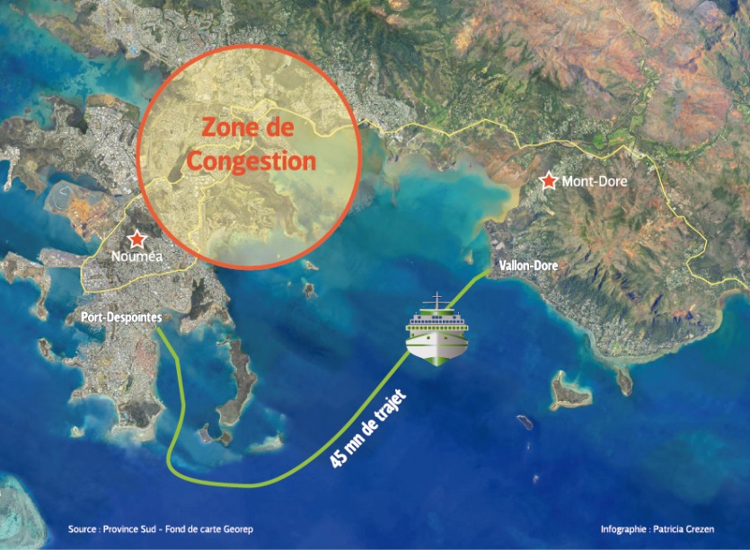 - Pour pallier l'enclavement du Mont-Dore, la province Sud envisage la mise en place d'un bac pour transporter les travailleurs depuis le Vallon-Dore. L'arrivée à Nouméa est prévue au niveau de l'ancien wharf de RFO, sur la promenade Vernier.Le projet de Bac ferries, présenté à la presse le 9 mars, par le haussaire Patrice Faure et la présidente de la province Sud, Sonia Backès, envisage une arrivée du ferry à l'ancien wharf de RFO. Il connecterait ainsi le Vallon-Dore au centre-ville de Nouméa via la rue du Port-Despointes,Il vous reste 90% de l'article à découvrir.Cet article est réservé aux abonnés.