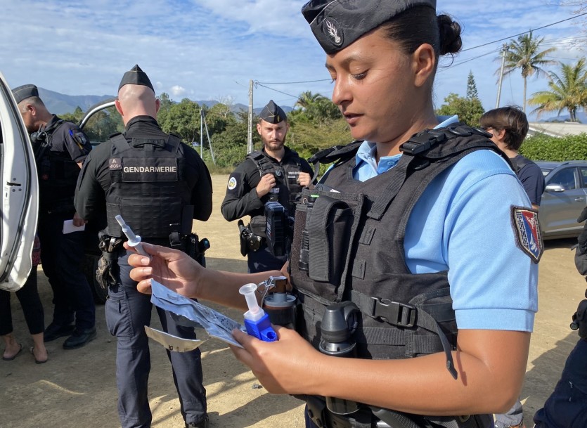 La brigadière a fait passer un test antidrogue positif. La conductrice est emmenée au poste. Photo A.D.Les deux personnes conduisent alors qu’ils ont consommé du cannabis. Un dépistage de stupéfiant est effectué. Il est positif. Leur véhicule est perquisitionné, du cannabis est retrouvé sur l’un d’eux. Les deux conducteurs sont accompagnés d’abord au poste pour un procès-verbal, puis à l’hôpital pour une prise de sang. "Il est possible de refuser la prise de sang, mais c’est une infraction", précise le lieutenant Cotteret. Les deux conducteurs se voient retirer leur permis de conduire durant 120 heures. La suite, c’est le tribunal qui s’en charge. "Ces opérations sont menées sous réquisition du procureur de la République, détaille le lieutenant-colonel Loïc Leroy, commandant de la compagnie de gendarmerie de Nouméa. Ce cadre légal élargit les possibilités de contrôles et permet davantage de prérogatives."
