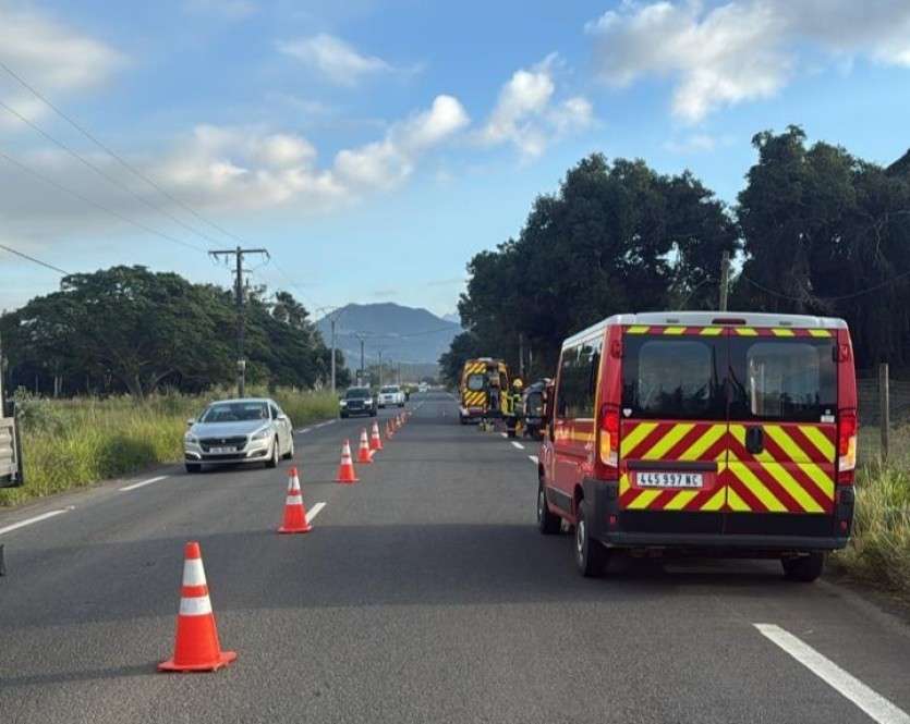 - A.T. | Crée le 27.06.2025 à 07h55 | Mis à jour le 27.06.2025 à 08h32ImprimerL’accident est survenu dans le sens sud-nord, donc sur la voie en direction de Tontouta. Photo DRLes pompiers de Païta sont intervenus, ce vendredi 27 juin, pour secourir un homme blessé et coincé dans son véhicule à la suite d’un accident survenu sur la RT1, vers Port-Laguerre, où le trafic a été fortement perturbé. La victime a été évacuée au Médipôle.