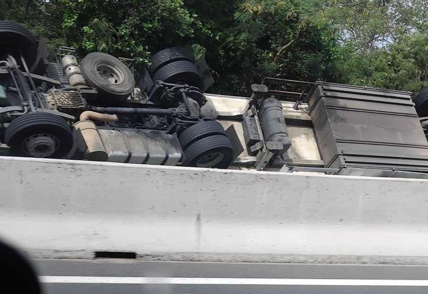Source : gouvernement[9H50] Un camion de marchandises de l'Ocef s'est renversé ce mercredi 22 janvier au matin dans le Col de la Pirogue dans le sens Tontouta-Nouméa.