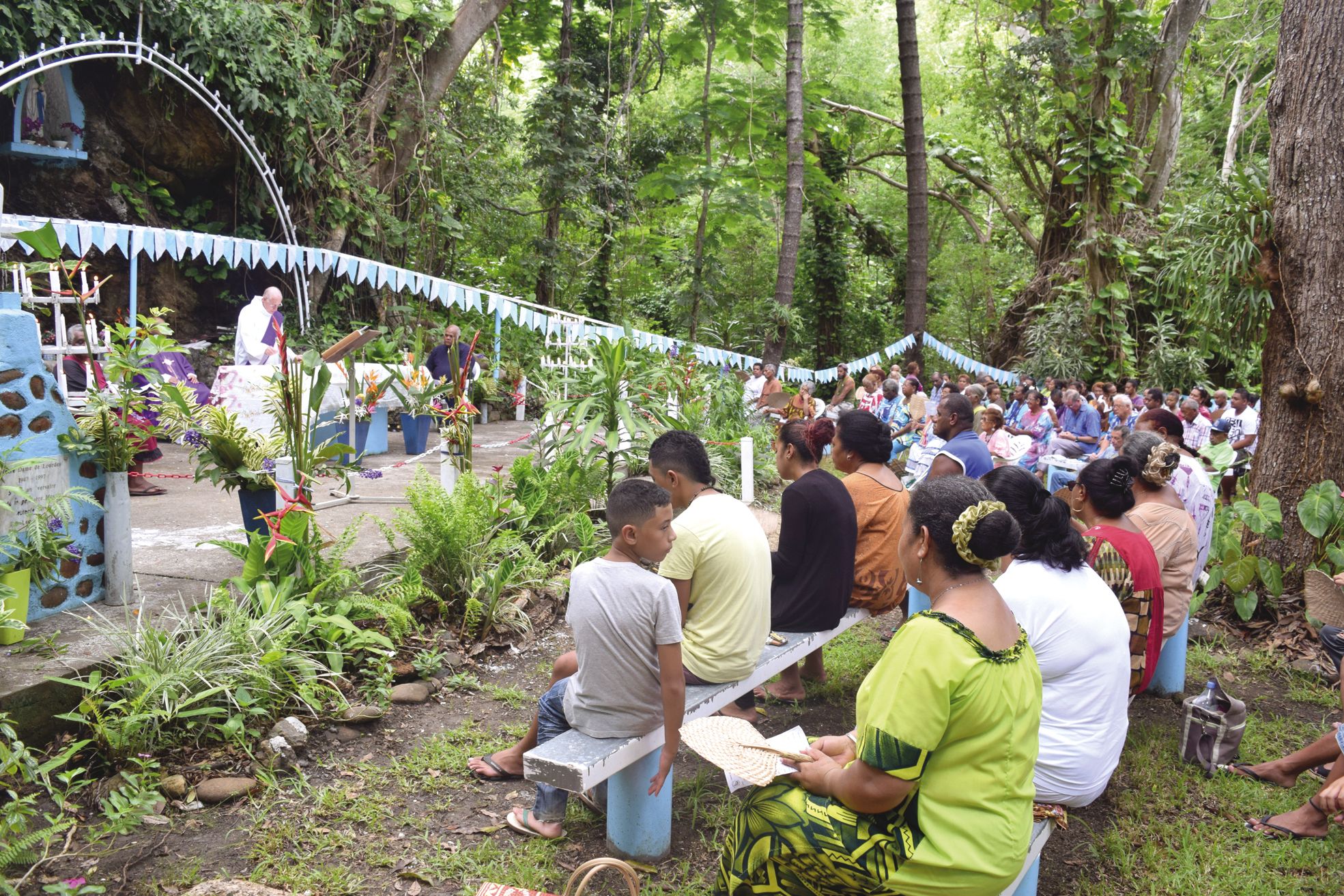 - Hier matin, une centaine de fidèles se sont donné rendez-vous dans le cadre luxuriant de la grotte de Bangou, le temps d’une belle messe en plein air. Cette cérémonie faisait écho à la retraite aux flambeaux menée jeudi soir afin de célébrer Notre-Dame de Lourdes. « Aujourd&Il vous reste 53% de l'article à découvrir.Cet article est réservé aux abonnés.