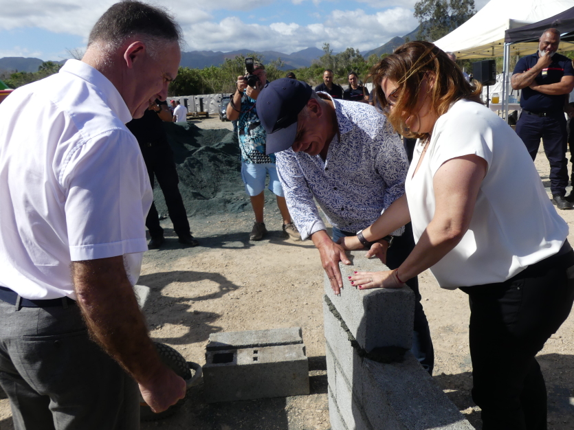 C’est sur un terrain encore largement en friche, au pied d’un Tontoutel à l’abandon, que Willy Gatuhau, Sonia Backès et Louis Le Franc ont déposé, mardi 14 novembre, la première pierre d’un projet évoqué depuis plusieurs années : le centre de première intervention de Tontouta.