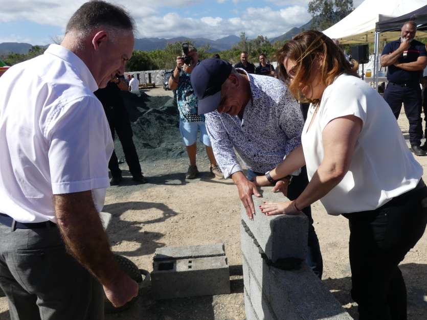 - Baptiste Gouret | Crée le 14.11.2023 à 18h43 | Mis à jour le 14.11.2023 à 18h43ImprimerLouis Le Franc, haut-commissaire, Willy Gatuhau, maire, et Sonia Backès, présidente de la province Sud, ont déposé la première pierre du projet de centre de première intervention, ce mardi à Tontouta. Photo Baptiste GouretLes élus ont posé la première pierre, ce mardi 14 novembre, du futur centre situé sur le site de l’ancien Tontoutel. Il accueillera quatre pompiers dès novembre 2024 et permettra de réduire largement le délai d’intervention dans le nord de la commune.