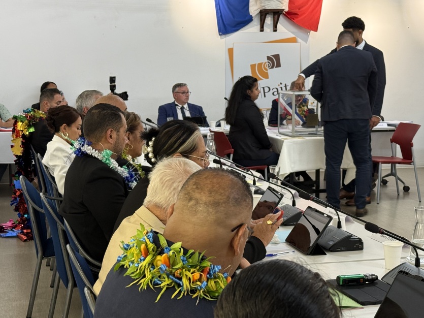 Les nouveaux conseillers municipaux ont procédé à deux votes : celui pour asseoir le maire, puis celui pour élire ses dix adjoints. Photo Aurélia DumtéLe nouvel édile a rappelé les piliers de son programme : "Nous avons des obligations en termes de sécurité, d'aménagement, d'accompagnement des populations. Ce sont autant de chantiers que nous débuterons dans les jours et les semaines qui viennent. Je souhaite que nous ne perdions pas trop de temps pour pouvoir le faire. Et je souhaite que, dans cette commune, nous, les élus, les uns et les autres, soyons à la disposition des administrés de Païta. Que nous leur donnions cette disponibilité et cette transparence." La nouvelle équipe municipale souhaite se mettre en mouvement rapidement sur des projets concrets, comme "la construction de cette maison des associations, qui fait cruellement défaut", assure le maire.