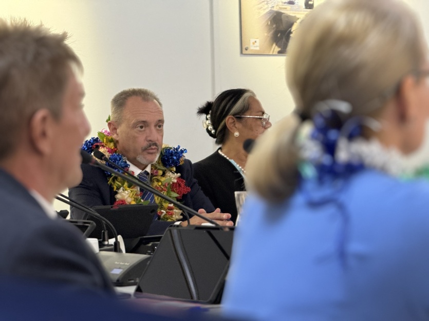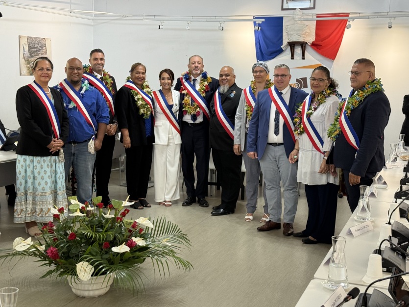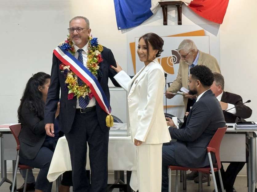 De nombreux élus arboraient des colliers de fleurs odorants à l’occasion de ce conseil municipal particulier. Photo Aurélia DumtéDehors, le tonnerre gronde. Est-ce la météo qui a inspiré le champ lexical d'Antoine Romain, nouveau maire de Païta, lors de son discours ? Le premier édile de la commune a commencé par remercier celle qui a tenu le poste durant deux ans, Maryline D'Arcangelo : "Merci d'avoir tenu la barque dans la tempête, depuis mai 2024." Puis Antoine Romain a évoqué l'avenir : "Je sais que des tempêtes se préparent, puisqu'il y aura sans doute bientôt de nouvelles élections. Je souhaite que, dans ce conseil municipal, nous tenions la route, nous tenions le cap sur lequel nous nous sommes engagés."