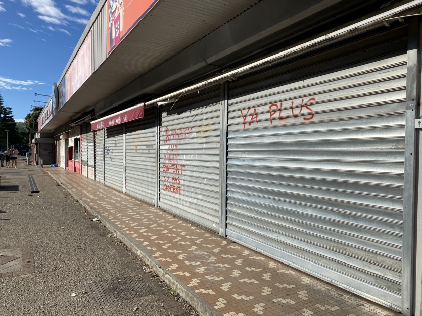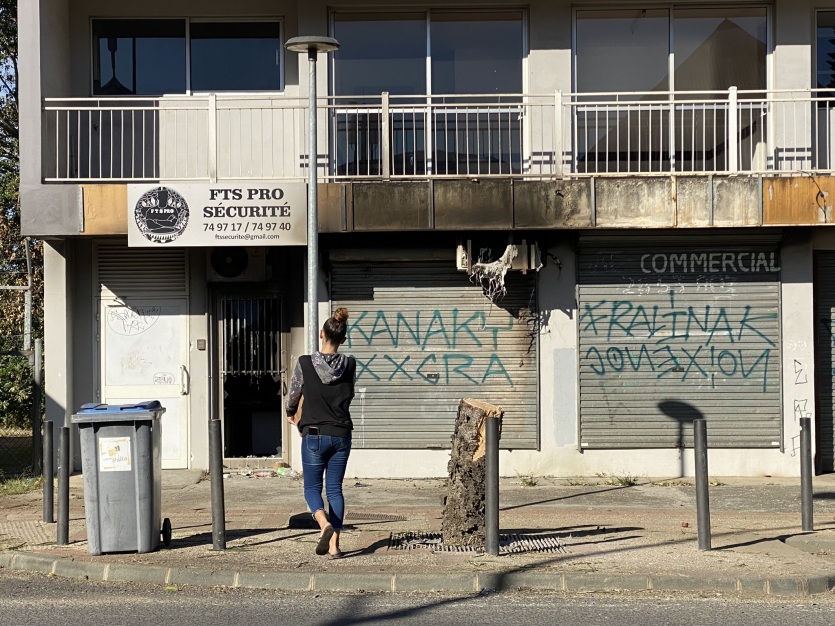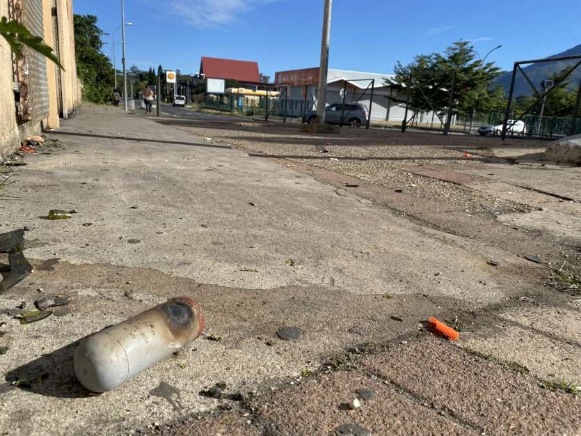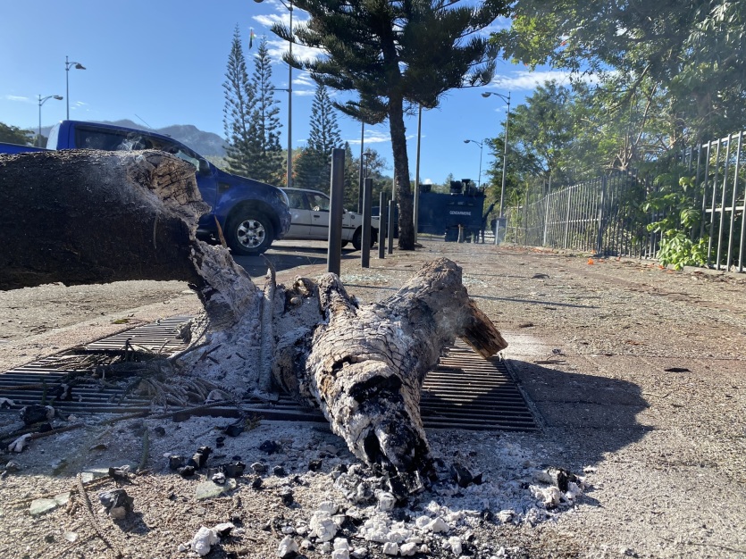 Une odeur de plastique brûlé, quelques fumées pèsent sur le centre de village. En ce vendredi matin, les gendarmes veillent à l’entrée de Païta. Les stigmates des violents heurts qui ont secoué le centre de la commune en ce début de semaine jonchent le sol ou sautent aux yeux. Arbres abattus, troncs fumants, restes de grenades de désencerclement, bris de verre, graffitis. Mardi matin, la maire de Païta, Maryline D’Arcangelo, constatait avec douleur : "je ne sais même plus si on peut parler de village. Il n’y a plus rien." L’OPT est fermé tout comme les banques, les magasins sont détruits ou pillés, mais certains services résistent comme ils peuvent. Les rares commerçants encore debout sont traversés par un sentiment de paranoïa.