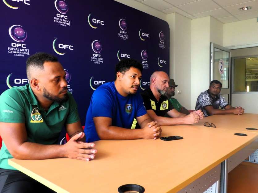 - Baptiste Gouret | Crée le 22.04.2024 à 17h30 | Mis à jour le 22.04.2024 à 17h30ImprimerLes entraîneurs des cinq équipes en lice pour la compétition, dont Michel Wassin (au centre), ont tenu une conférence de presse ce lundi, à la veille du début de la compétition. Tableau OCFLa Nouvelle-Calédonie accueille, de mardi à dimanche, la deuxième édition de la Ligue des champions de futsal organisée par l’Oceanian football confederation (OFC) et la fédération calédonienne de football. Champion calédonien 2023, l’ASPTT représentera le Caillou lors de cette compétition internationale.