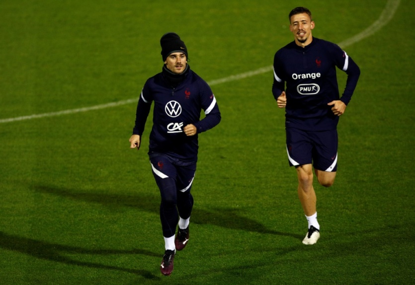 Antoine Griezmann et Clément Lenglet à l'entrainement avec les Bleus, à Clairefontaine, le 10 novembre 2020 Yoan VALAT [EPA POOL/AFP/Archives]