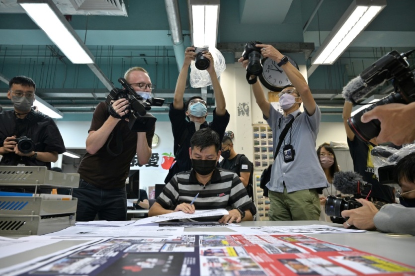Plus de 500 policiers avaient débarqué dans la salle de rédaction pour procéder à une perquisition. Ils avaient arrêté cinq de ses dirigeants en raison d'une série d'articles qui, selon la police, appelaient à des sanctions internationales contre la Chine.