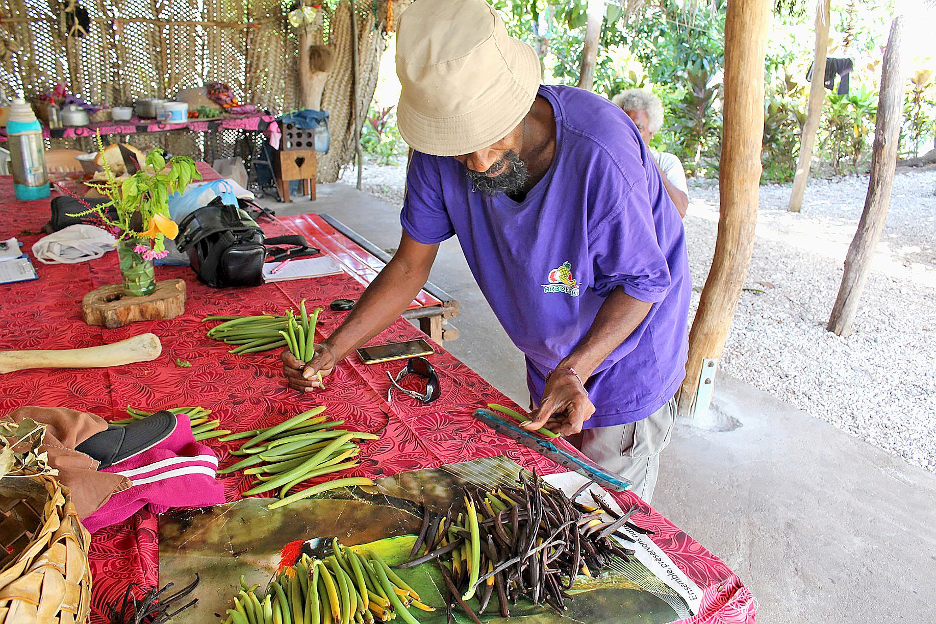 Trier, vérifier, peser, payer. Chez chaque producteur, le même rituel se répète pour Kuin Wetewea, technicien de l’association Arbofruits. Depuis la mi-mai et tout le mois de juin, la campagne d’achat de la vanille verte est ainsi organisée par l’association, en partenariat avec la Maison