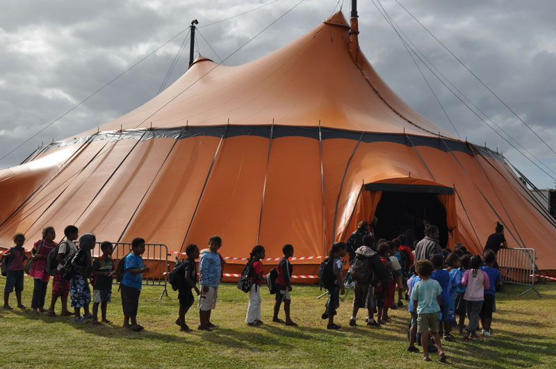 - Plus de deux cent cinquante enfants des écoles, littéralement « scotchés » devant le couple de clowns Smak et Toopi. Leurs échanges sont ponctués par les rires de ce jeune public attentif.Arrivé dimanche dernier en fin de journée, le Chapitô a planté sa grande toile orange devant la paroisse de Gossanah. Sur un grand terrain soigneusement débroussaillé par le club de foot Moustik, cette grande salle de spectacle a ouvert mardi dernier son rideau sur une création de laIl vous reste 90% de l'article à découvrir.Cet article est réservé aux abonnés.