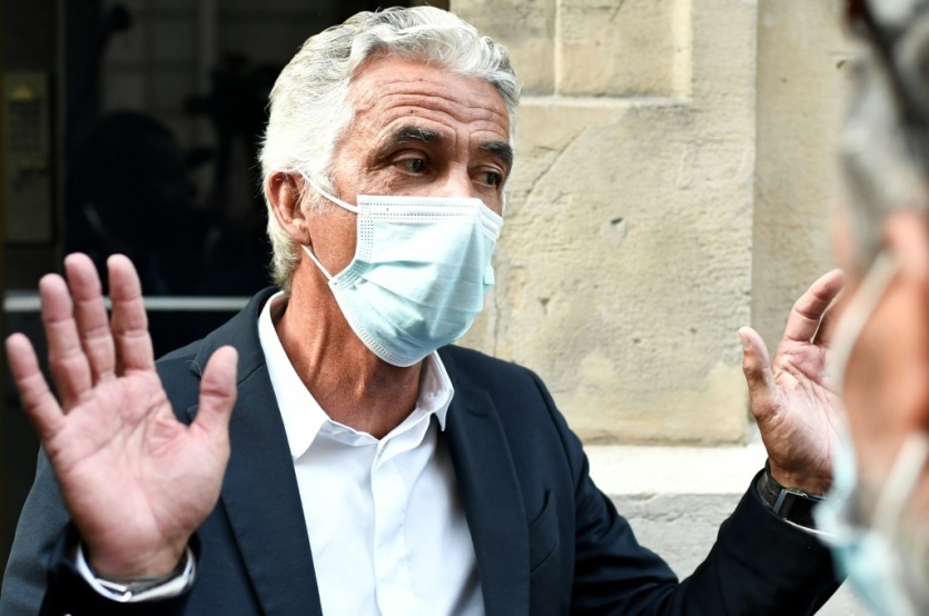 Le président de l'OGC Nice, Jean-Pierre Rivère, à sa sortie du siège de la Ligue de football professionnel, le 25 août 2021 à Paris, après son audition suite aux incidents survenus, dimanche, lors du match Nice-Marseille à l'Allianz Arena STEPHANE DE SAKUTIN [AFP]MERCI DE VOUS IDENTIFIER