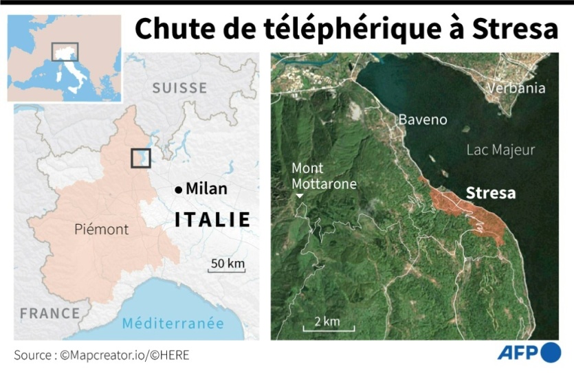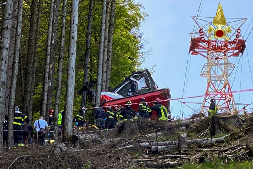 Une cabine de téléphérique a fait une chute, tuant plusieurs personnes, à Stresa au bord du lac Majeur, dans le nord de l'Italie, le 23 mai 2021 Handout [Vigili del Fuoco/AFP]MERCI DE VOUS IDENTIFIER