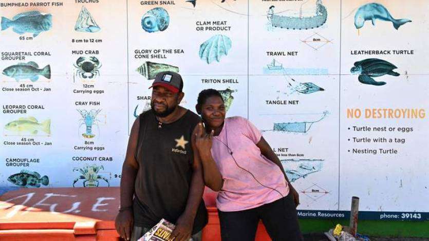 Sur le marché de produits de la mer d’Honiara, la capitale, un écriteau défraîchi rappelle qu’il est interdit de vendre du dauphin, pratique à laquelle se livraient des villages côtiers dans les années 2000 pour le compte de parcs aquatiques étrangers.