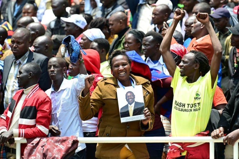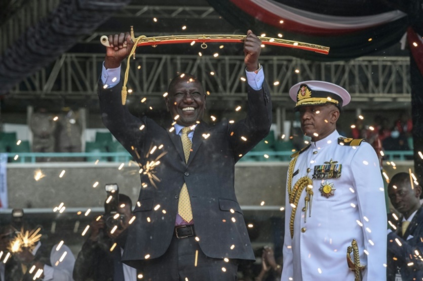 Une main posée sur la Constitution, l'autre tenant une bible, le nouveau chef de l'Etat, âgé de 55 ans, a prêté serment au stade Kasarani de Nairobi, devant 60.000 personnes dont une vingtaine de chefs d'Etat et de gouvernement (Ethiopie, Ouganda, Somalie, Tanzanie, RDC, Rwanda, Congo...).