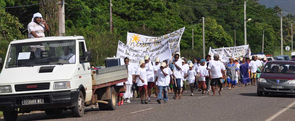 - Les délégations des communes de Bélep, Poum, Pouébo, Ouégoa et Koumac ont participé, samedi, à une marche jusqu'à Témala, récupérant au passage de nombreux sympathisants. Objectif : dénoncer les violences intrafamiliales.A l'initiative de cette mobilisation, la cellule « Violence ». Celle-ci, constituée d'une partie du personnel de l'hôpital Thavaovianon, constate qu'il n'existe aucune prise en charge de soins de la femme en difficulté en province Nord.« Celles qui décident de quitter ce milieu deIl vous reste 90% de l'article à découvrir.Cet article est réservé aux abonnés.